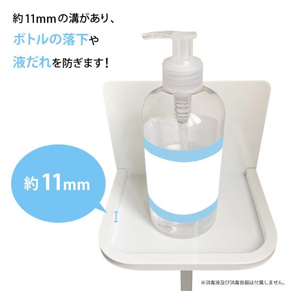 また、アルコールボトル設置台には約11mmの溝あります。この溝があることによって、ボトルの落下やボトルからの液垂れを防ぐことができます!( *´艸`)